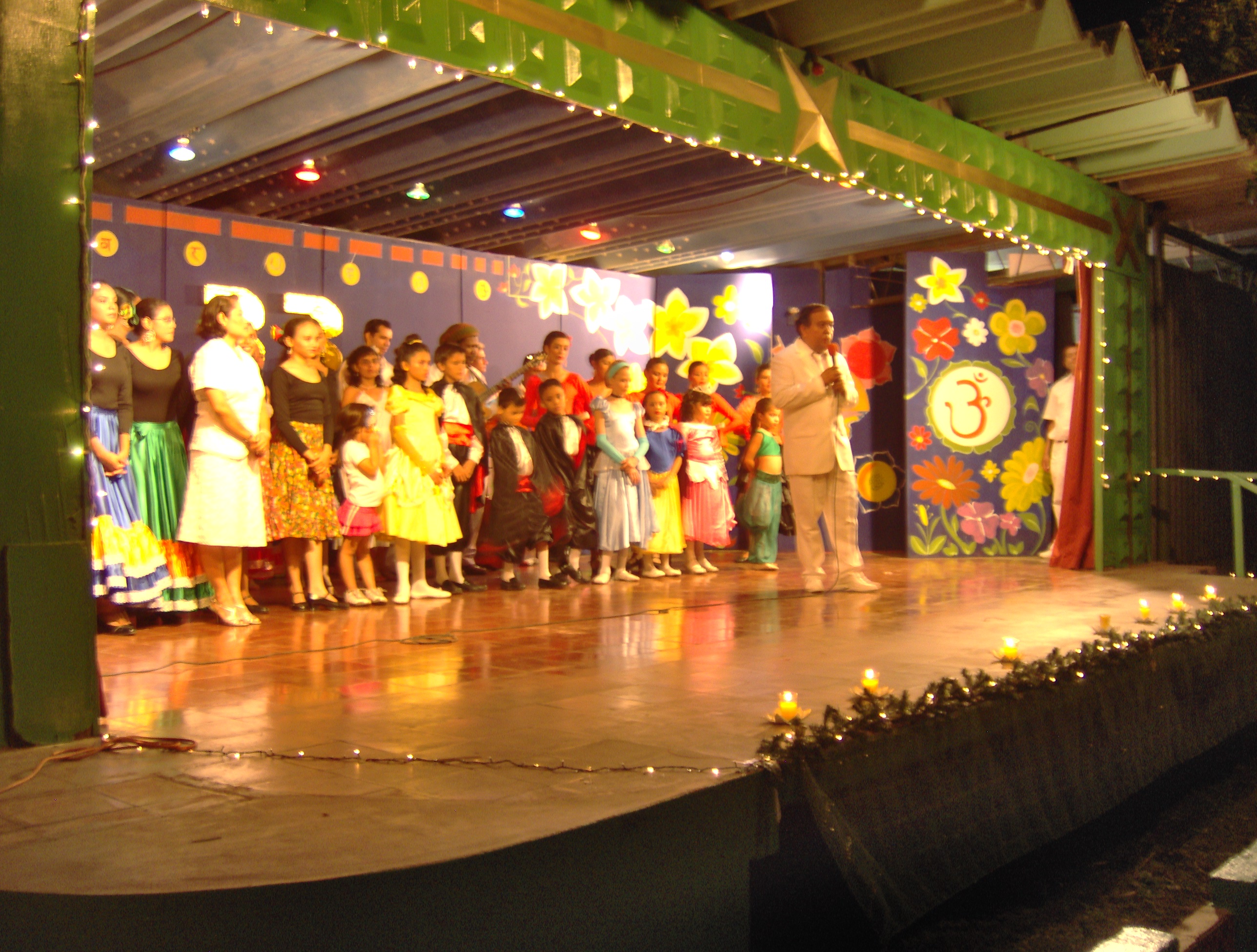 El pasado Sábado 28 de Noviembre 2009 se celebró el XXXIII Aniversario del Centro Cultural Yoga Devanand, Sede Central de la Sociedad Internacional de Realización Divina de Nicaragua, en el Reparto Miraflores, Managua. La celebración fue todo un éxito, con una asistencia superior a las 300 personas, una cena vegetariana exquisita y un colorido y variado acto artístico cultural que deleitó por mas de dos horas a todos nuestros invitados. El Servicio Impersonal hizo posible la realización de esta bella noche, llena de agradables aromas, sabores, sonidos y colores, participando mas de 50 personas miembros de la Escuela, desde la planificación, compras, elaboración, ensayos, propaganda etc,.. Siempre con el respaldo insustituible e indispensable de nuestro amado Maestro, SWAMI GURU DEVANAND SARASWATI JI MAHARAJ, «El Maestro del Presente».